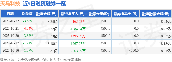天马科技融资融券信息数据显现,融资方面,当日融资买入1925.2万元,融资归还1762.79万元,融资净买入162.42万元。融券方面,融券卖出0.0股,融券归还0.0股,融券余量4500.0股,融券余额6.49万元。融资融券余额8.24亿元。
