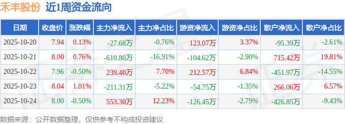 沪深股通持股方面,截止2025年10月24日收盘,禾丰股份沪股通持股数为840.1万股,占流通股比为91.0%。